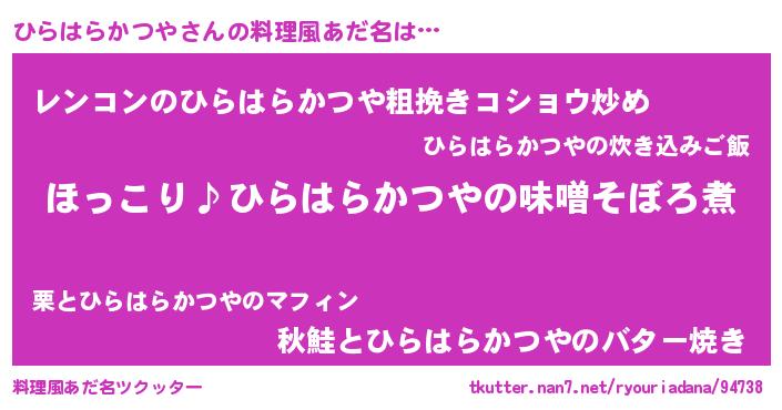 | 女子向けラノベタイトル風あだ名 | 『(仮)ひらはらかつやのやんごとなき事情』 |