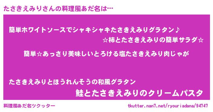 | 意味不明あだ名 | 『永久保存たさきえみり』 |