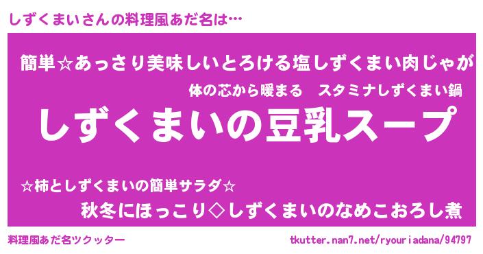 | ポケモン風あだ名 | 『ヒシズクマイ』『ゼニシズ』 |