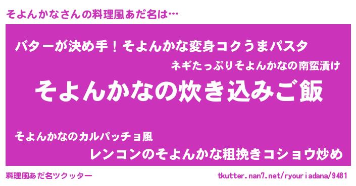 | 男性向けラノベタイトル風あだ名 | 『うちのそよんかなが世界を掌握している!』 |