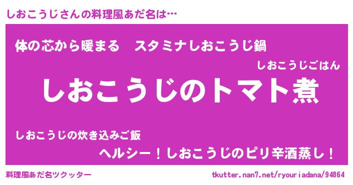 | 女子向けラノベタイトル風あだ名 | 『しおこうじ夫妻のなれそめ』 |