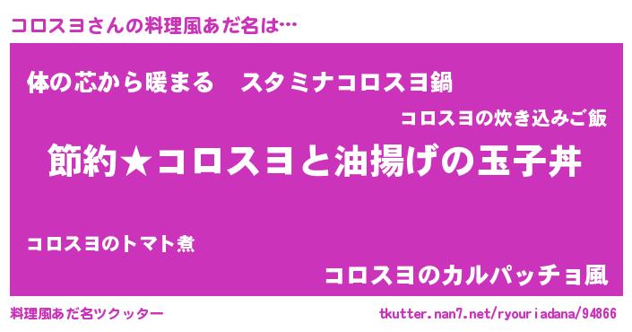 | ファンタジー風あだ名 | 『コロフェル』『エターナルコロスヨー』 |