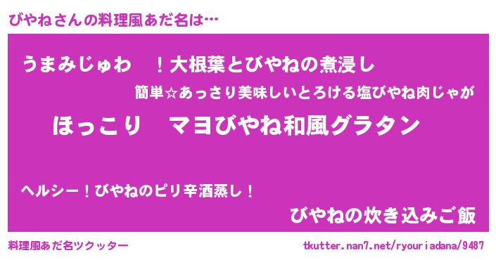 | 男性向けラノベタイトル風あだ名 | 『この素晴らしい世界にびやねを!』 |