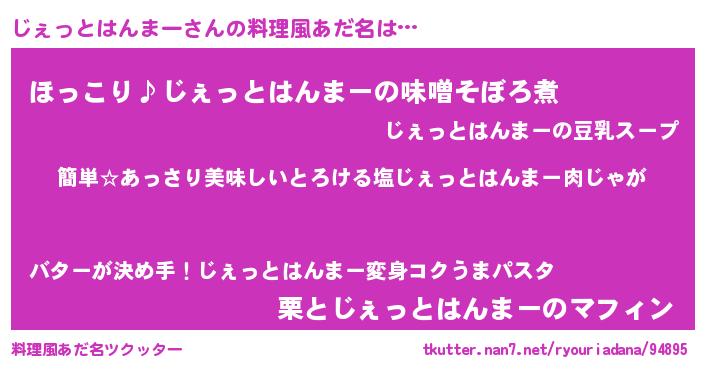 | ヘコむあだ名 | 『じぇっとはんまー(笑)』『じぇにゅー』 |