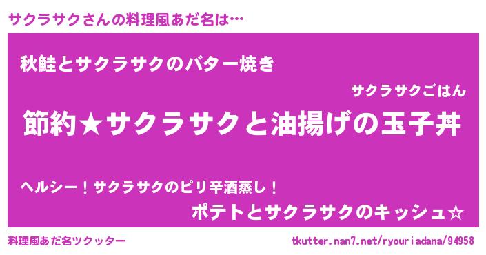 | ヘコむあだ名 | 『サクふぇ~』『サクラサク(震え声)』 |