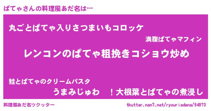 | ヘコむあだ名 | 『豆乳』『ぱてゃ(爆)』『ぱて太郎』 |