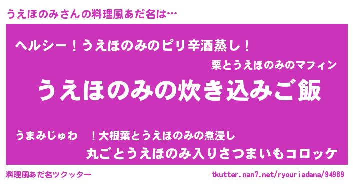 | ヘコむあだ名 | 『なまこ酢』『うえほのみ(笑)』 |