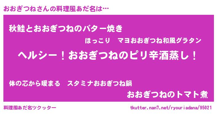 | 男性向けラノベタイトル風あだ名 | 『Re:おおぎつねから始める異世界生活』 |
