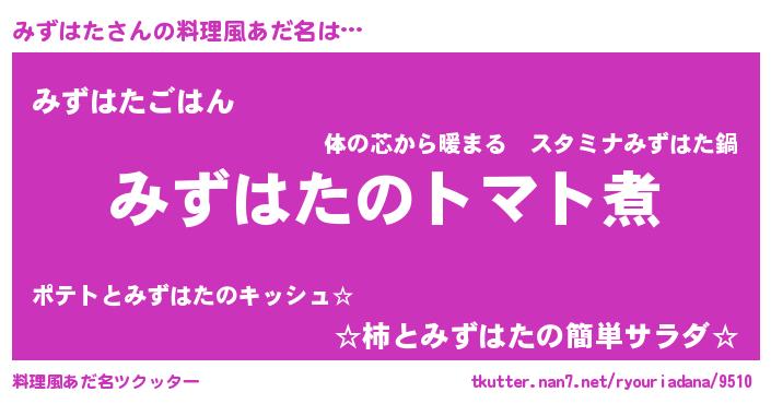 | ヒーロー風カッコイイあだ名 | 『正義の使者みずはた』『魔戒騎士ミズ』 |