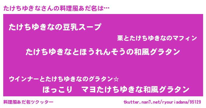 | ポケモン風あだ名 | 『タケキング』『ヒタケチユキナ』 |
