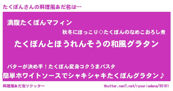 | ピコ太郎風あだ名 | 『ピコタ郎』『タク八郎』『タタ太郎』 |