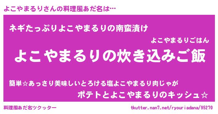 | ヘコむあだ名 | 『よこもー』『よこぷりん』 |