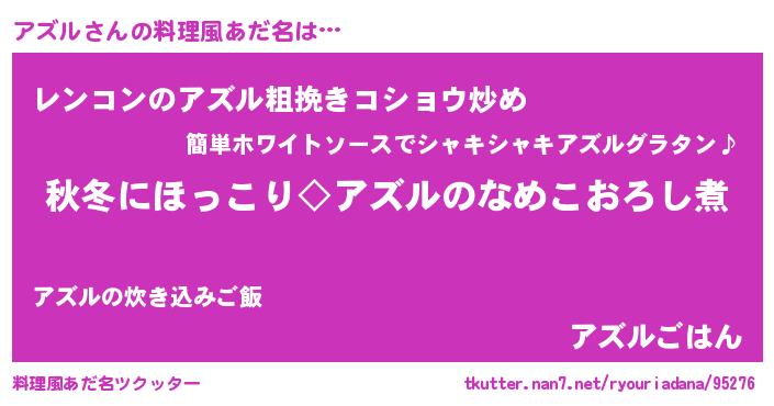 | 意味不明あだ名 | 『自称アズル』『しいたけ科アズル属』 |