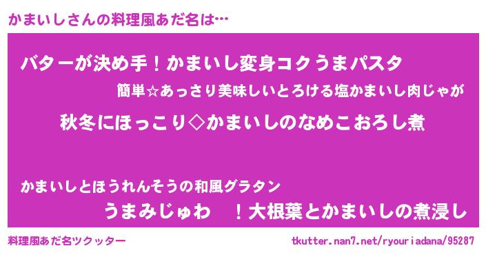 | ヒーロー風カッコイイあだ名 | 『天空の使者かまいし』『ネオカマイシ』 |