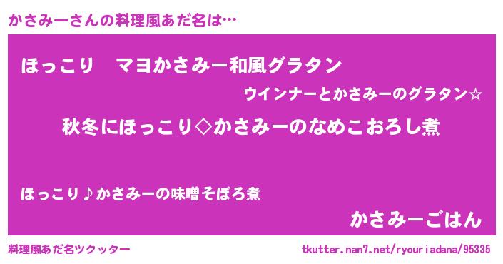 | 男性向けラノベタイトル風あだ名 | 『かさみーに滅ぼされるだけの簡単なお仕事です』 |