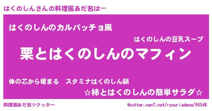 | ピコ太郎風あだ名 | 『ハク十郎』『ピハ史郎』『ハコ六郎』 |