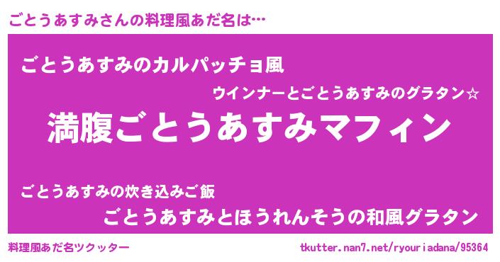 | 意味不明あだ名 | 『永久保存ごとうあすみ』 |
