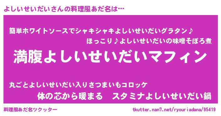 | 胡散臭い通販商品みたいなあだ名 | 『絶対に幸福をもたらす水素水…その名も「よしいせいだい」』 |