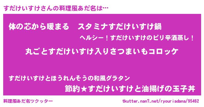 | 意味不明あだ名 | 『住所不定無職すだけいすけ(50歳)』 |