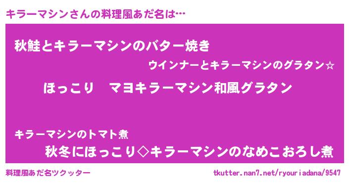 | ヘコむあだ名 | 『キラーマシン(小並感)』『なまこ酢』 |