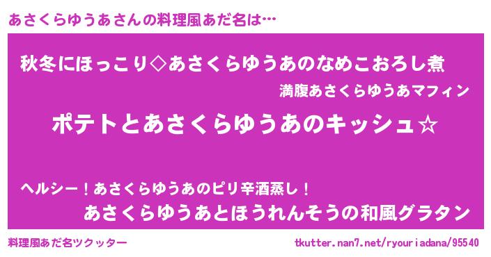 | 意味不明あだ名 | 『とにかく怪しいあさくらゆうあ』 |