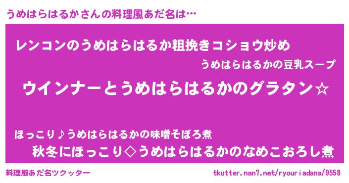 | 男性向けラノベタイトル風あだ名 | 『やはりうめはらはるかの青春ラブコメはまちがっている 』 |