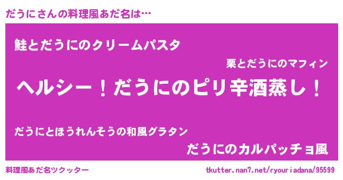 | 女子向けラノベタイトル風あだ名 | 『闇のだうに』『死神だうにの再婚』 |