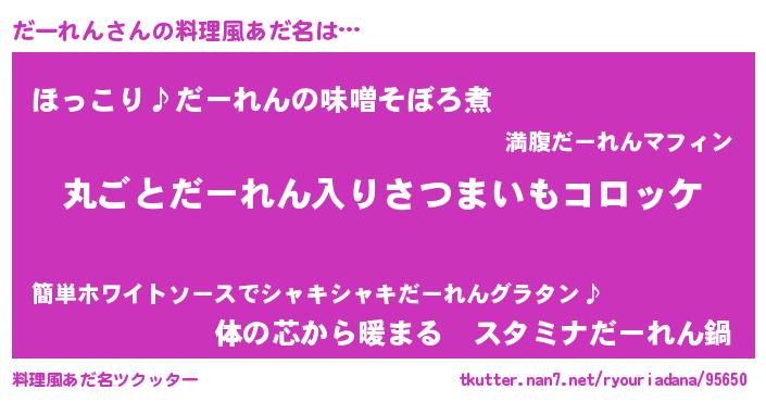 | 意味不明あだ名 | 『住所不定無職だーれん(7歳)』 |