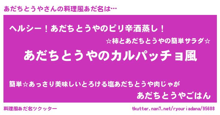 | 意味不明あだ名 | 『住所不定無職あだちとうや(86歳)』 |