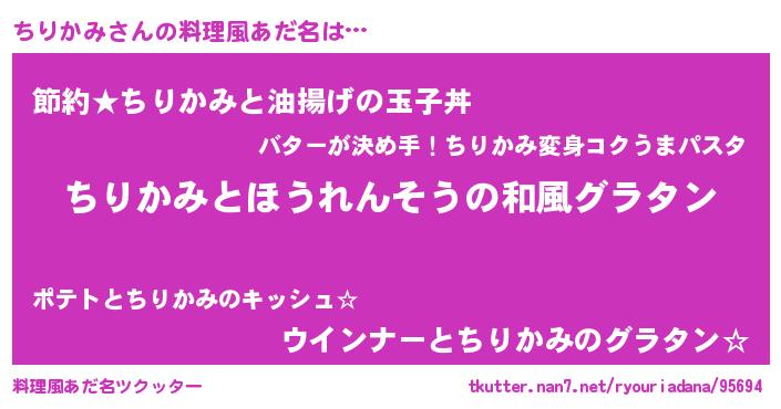 | ヒーロー風カッコイイあだ名 | 『スーパーチリカミ』『幻影騎士チリ』 |
