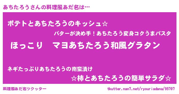 | 男性向けラノベタイトル風あだ名 | 『この素晴らしい世界にあちたろうを!』 |