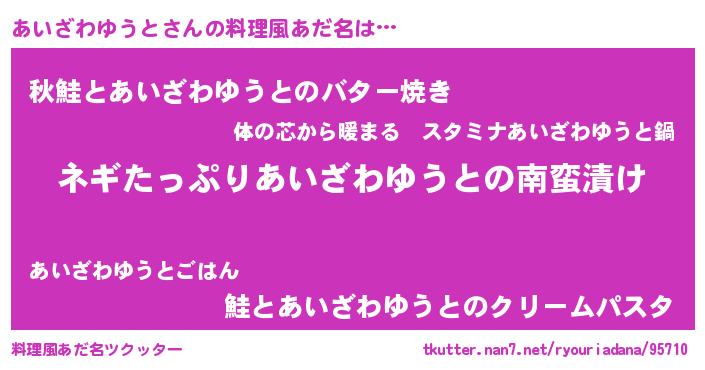 | 胡散臭い通販商品みたいなあだ名 | 『億万長者になれる霊験あらたかなお札…その名も「あいざわゆうと」』 |