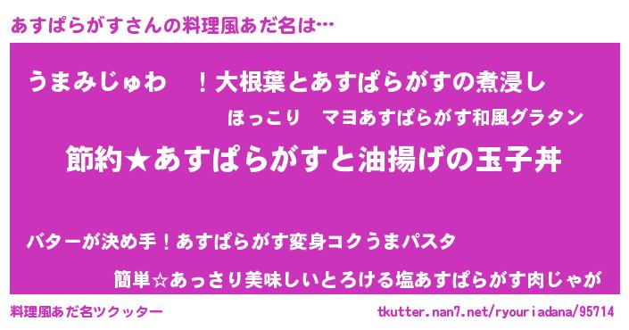 | 胡散臭い通販商品みたいなあだ名 | 『モテモテ間違いなし水晶球…その名も「あすぱらがす」』 |