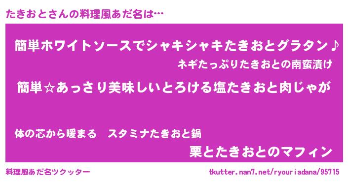 | ヘコむあだ名 | 『たきおと(小並感)』『たきお』 |