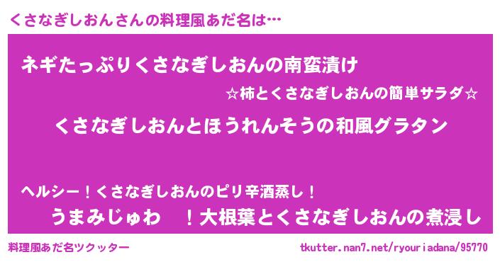 | 男性向けラノベタイトル風あだ名 | 『転生したらくさなぎしおんだった件』 |