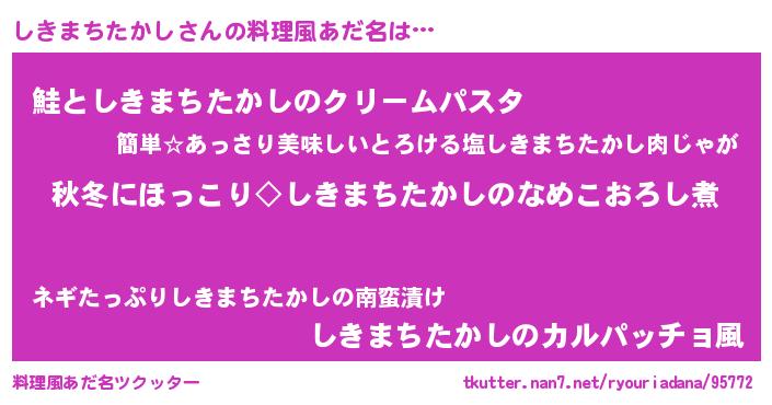 | 男性向けラノベタイトル風あだ名 | 『しきまちたかしに滅ぼされるだけの簡単なお仕事です』 |