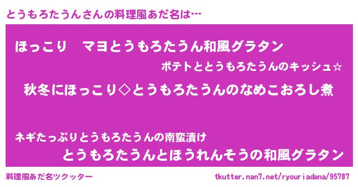 | 意味不明あだ名 | 『住所不定無職とうもろたうん(11歳)』 |