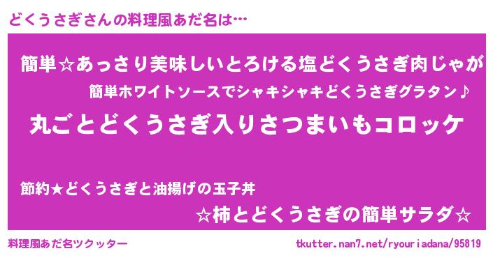 | 意味不明あだ名 | 『住所不定無職どくうさぎ(47歳)』 |