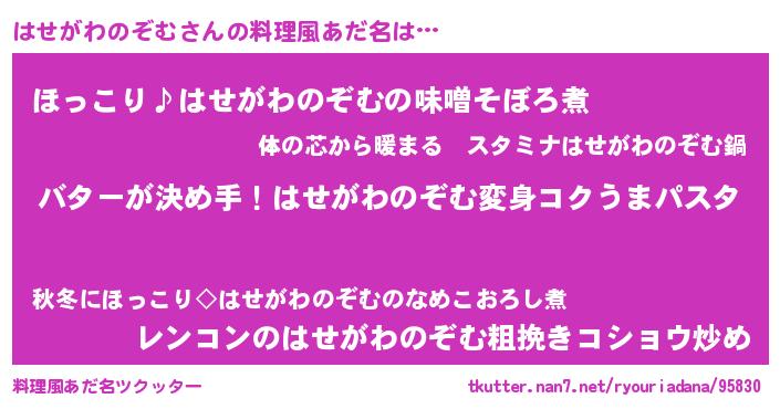| 女子向けラノベタイトル風あだ名 | 『はせがわのぞむ恋絵巻』 |