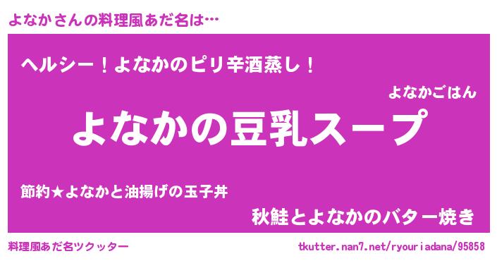 | 胡散臭い通販商品みたいなあだ名 | 『信頼と実績のサプリメント…その名も「よなか」』 |