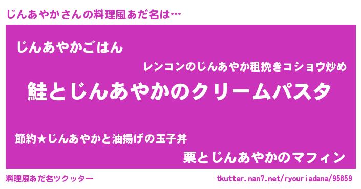 | 女子向けラノベタイトル風あだ名 | 『死神じんあやかの再婚』 |