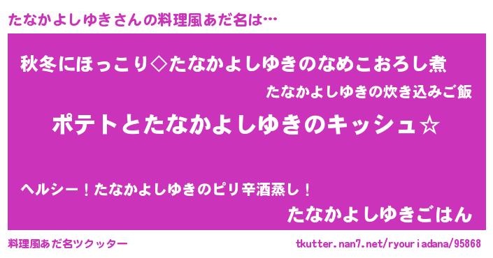 | ポケモン風あだ名 | 『ヒタナカヨシユキ』『タナゴンZ』 |