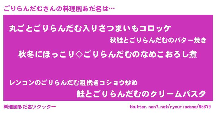 | 男性向けラノベタイトル風あだ名 | 『ごりらんだむに滅ぼされるだけの簡単なお仕事です』 |