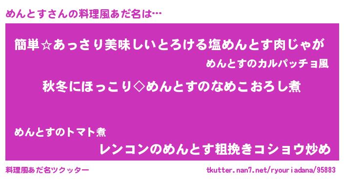 | 男性向けラノベタイトル風あだ名 | 『めんとすに滅ぼされるだけの簡単なお仕事です』 |