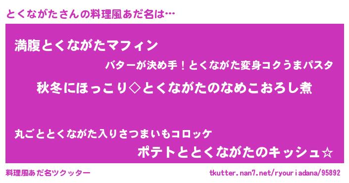 | ヘコむあだ名 | 『とくながた(苦笑)』『とくお』 |