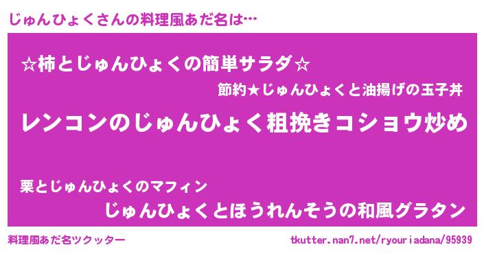 | ヘコむあだ名 | 『じゅにー』『なまこ酢』『じゅっ子』 |