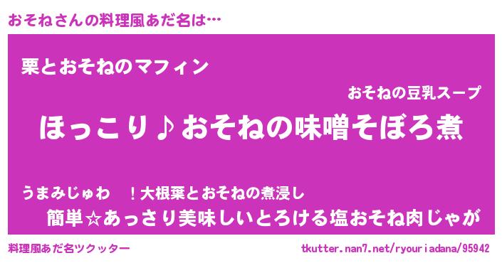| ヘコむあだ名 | 『おそふぇ~』『おそね(小並感)』 |