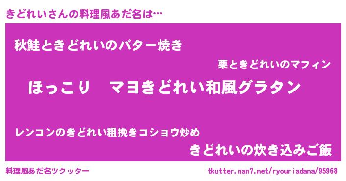 | 男性向けラノベタイトル風あだ名 | 『この素晴らしい世界にきどれいを!』 |