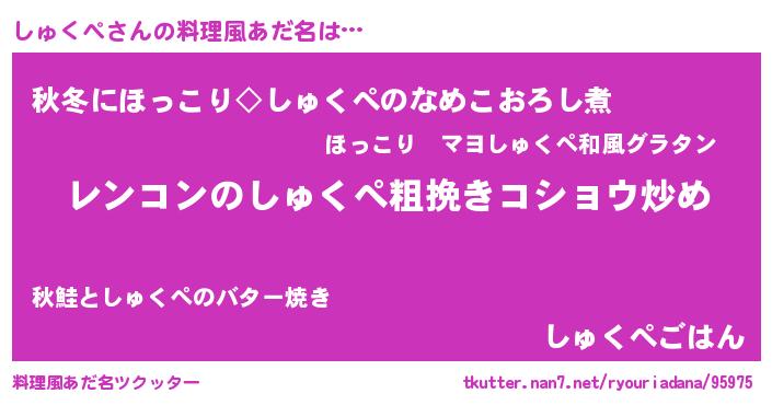 | ヘコむあだ名 | 『しゅくぺ(遠い目)』『しゅっふぃ~』 |