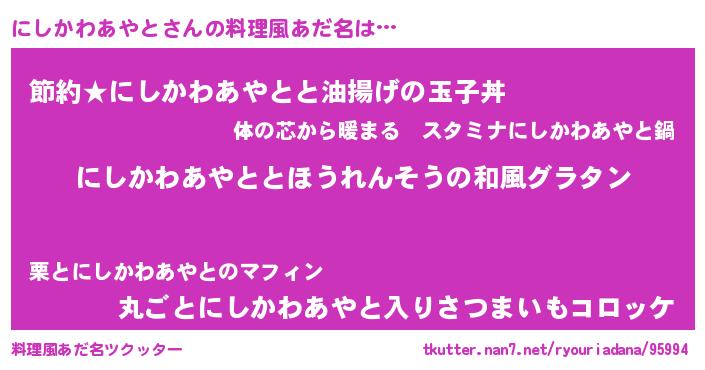 | 肩書あだ名 | 『にしかわあやと大佐』 |